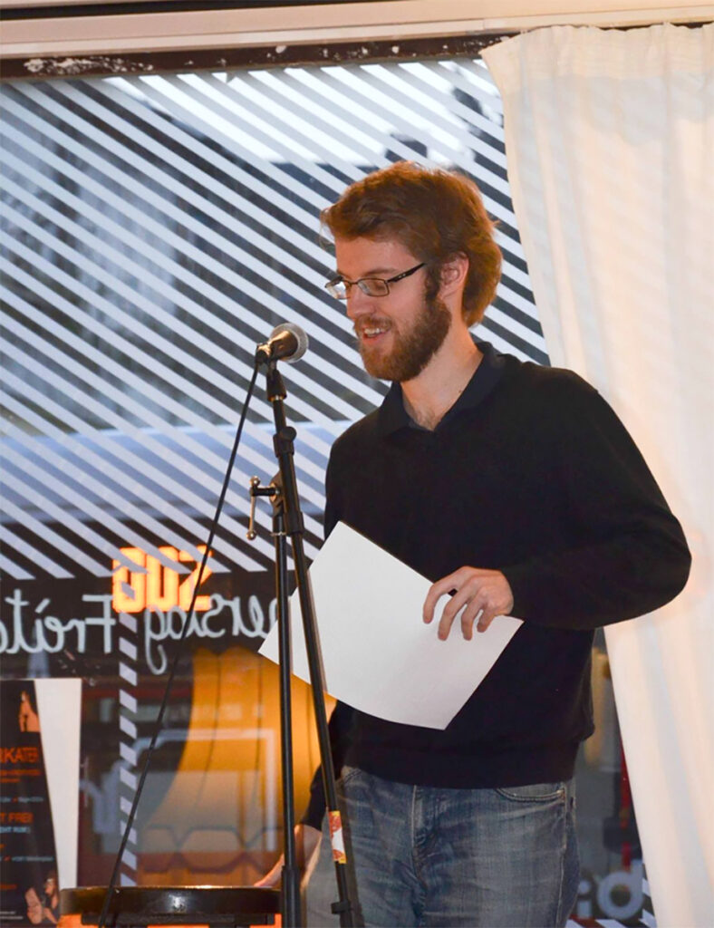 Born and raised in Germany, Torsten Schoeneberg published short stories there before immigrating to Victoria in 2016. Torsten keeps active in the regional poetry and literature scene of Vancouver Island, including as co-organizer of an open mic series, and has published poems in local publications such as Oratorealis. His current work in progress includes reviews of fictional books, which he will present at the stroll.